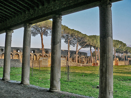 | The palaestra or athletic training field adjacent to the amphitheater in Pompeii. Photographed in the archaeological site of Pompeii by Mary Harrsch © 2007. |